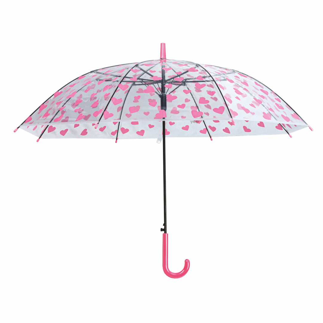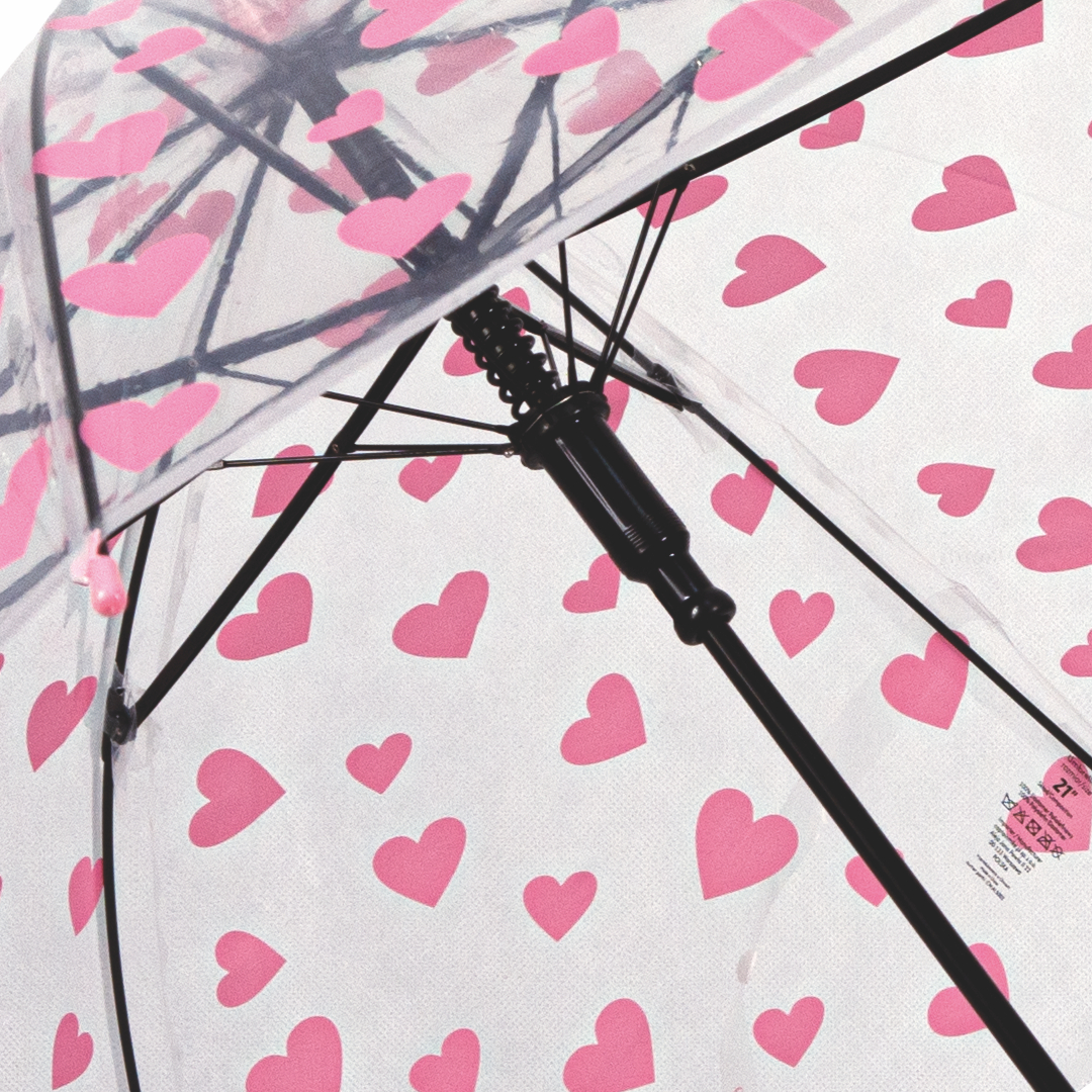 - Romantyczny design: Subtelne różowe serca na przezroczystej czaszy sprawiają, że parasol wygląda elegancko i dziewczęco.