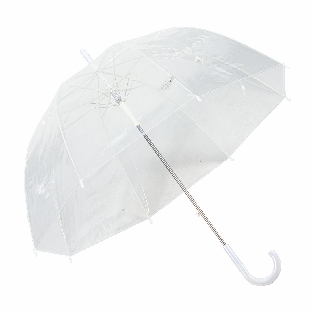 Transparentny parasol ślubny Captain Mike to elegancki dodatek, który ochroni Cię przed kaprysami pogody, nie zasłaniając sukni i dodając uroku zdjęciom. Solidna konstrukcja i wygodny uchwyt zapewniają komfort, a subtelny design doskonale wpisuje się w ślubną estetykę. Idealne rozwiązanie na wyjątkowy dzień!