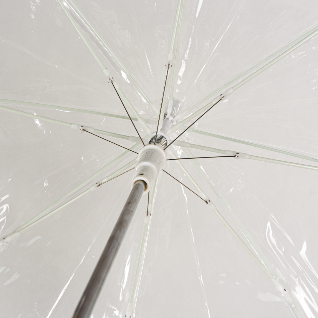 - Subtelna elegancja: Przezroczysta czasza idealnie wpisuje się w ślubną estetykę, nie zasłaniając sukni i nie odbierając uwagi od najważniejszych detali.
