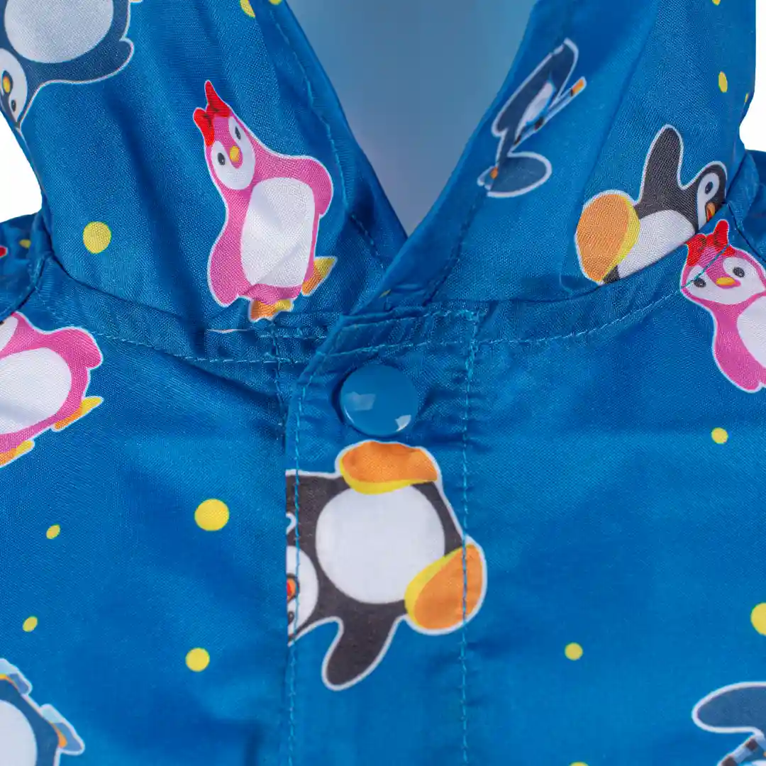 Szukasz idealnej ochrony przed deszczem dla swojego malucha? Nasza lekka i praktyczna pelerynka przeciwdeszczowa z uroczym wzorem pingwinków to doskonały wybór! Chroń swoje dziecko przed kaprysami pogody dzięki naszej pięknej pelerynce. Ta kolorowa i funkcjonalna pelerynka nie tylko zabezpieczy malucha przed deszczem i wiatrem, ale także sprawi, że każdy spacer stanie się radosną przygodą.