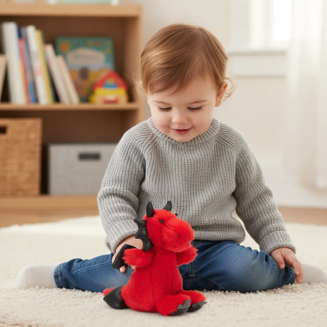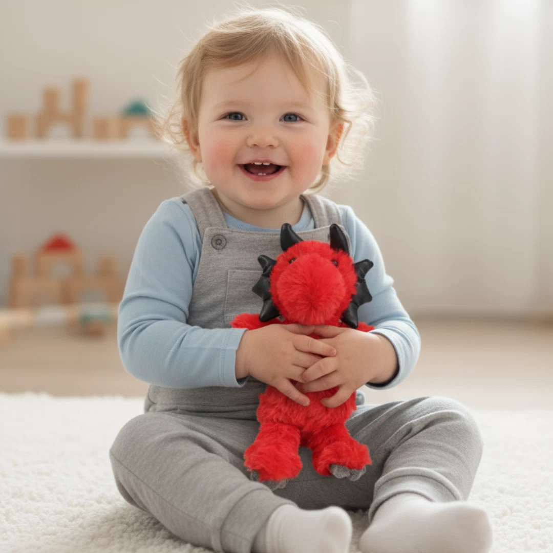 Szukasz wyjątkowego prezentu dla dziecka lub uroczego towarzysza do przytulania? Ten mięciutki czerwony smok zachwyca od pierwszego wejrzenia! Jego puszyste futerko sprawia, że aż chce się go przytulać bez końca, a czarne skrzydełka i rogi dodają mu bajkowego uroku. To maskotka, która od razu przyciąga uwagę i wywołuje uśmiech – zarówno u dzieci, jak i dorosłych.