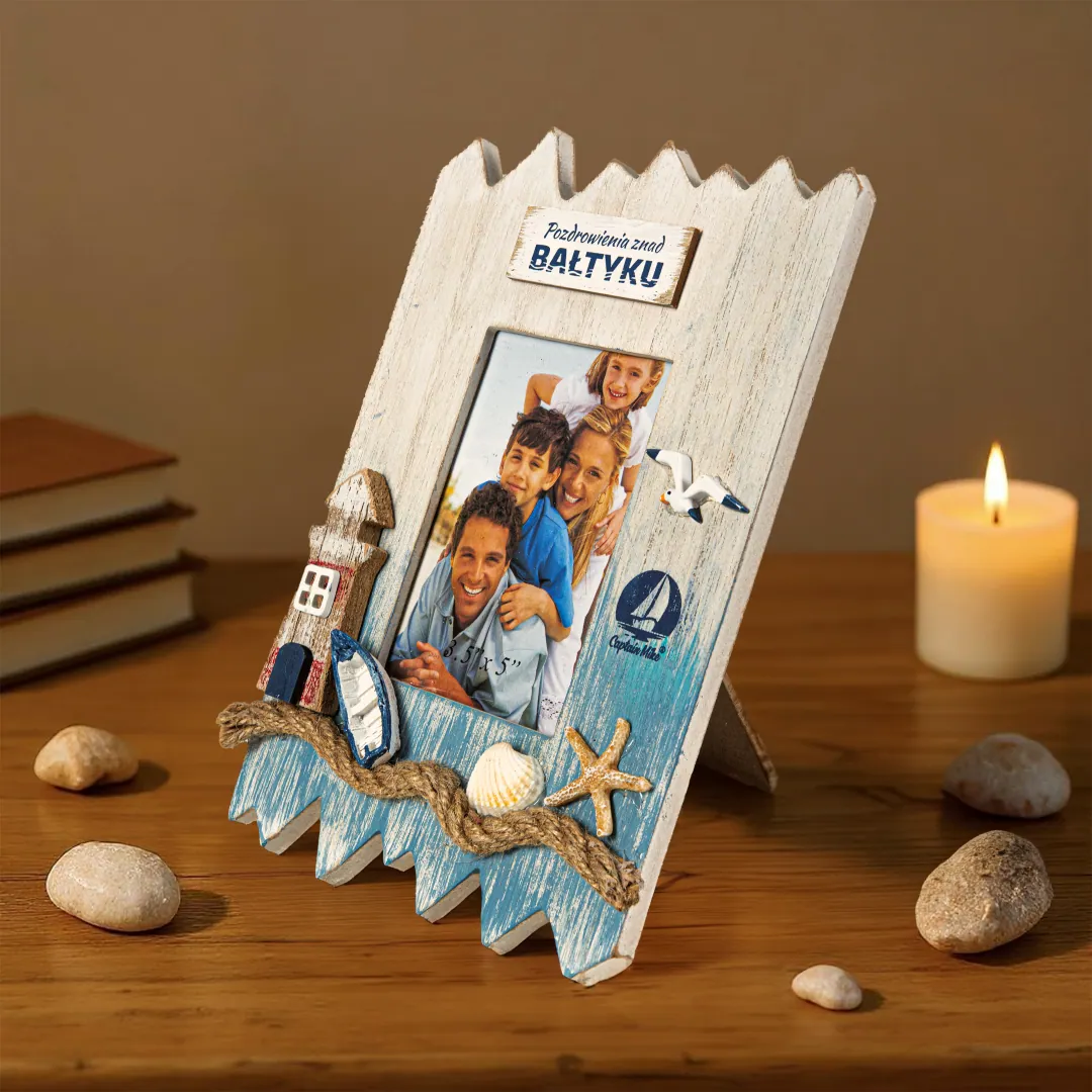 Ramka „Pozdrowienia znad Bałtyku” to doskonały sposób, by zatrzymać wspomnienia z wakacji. Świetnie sprawdzi się jako upominek dla bliskiej osoby, prezent z podróży lub dekoracyjny akcent w domku letniskowym. Wystarczy dodać ulubione zdjęcie z plaży, by znów poczuć zapach morza i szum fal.