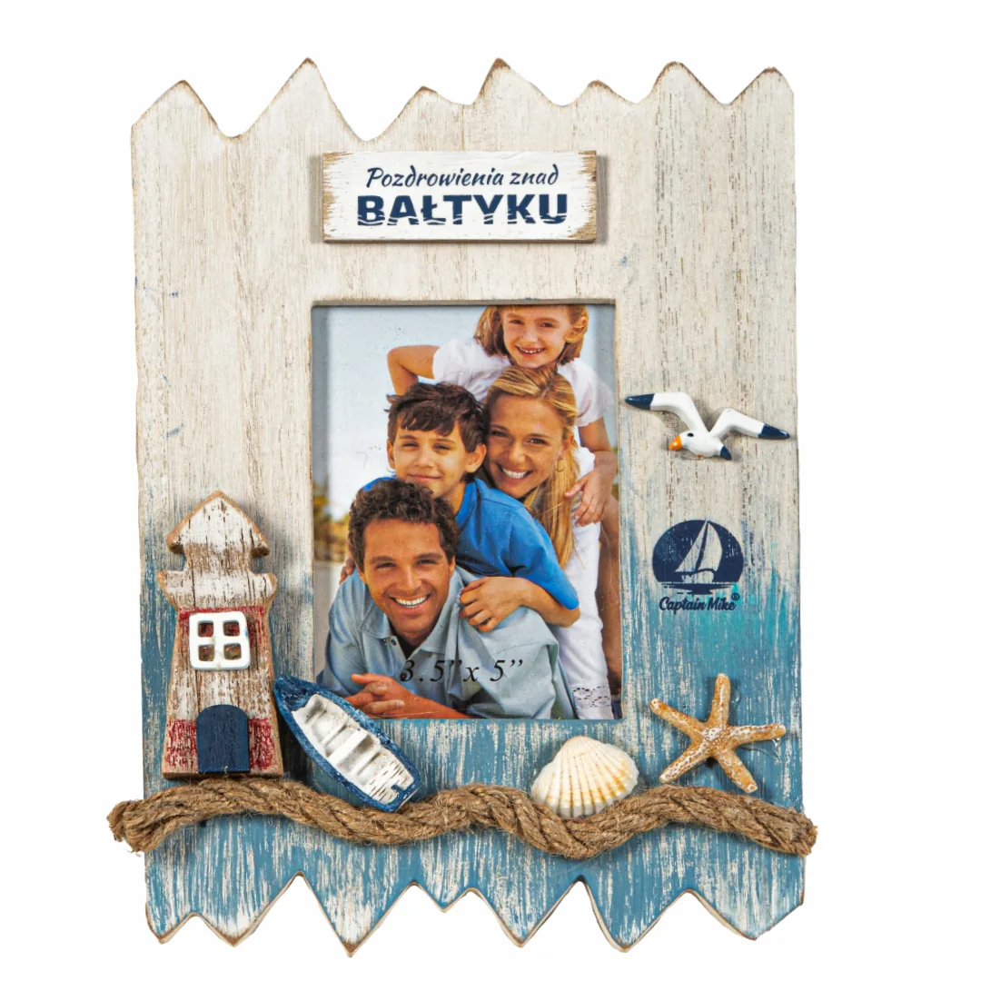Wprowadź do swojego wnętrza klimat nadmorskich wakacji dzięki ozdobnej ramce na zdjęcie o wymiarach 8 x 11,5 cm od marki Captain Mike. To nie tylko praktyczny sposób na wyeksponowanie ulubionej fotografii, ale również dekoracja pełna morskiego uroku. Ramka została starannie wykonana z trwałych materiałów i ozdobiona marynistycznymi detalami – miniaturowymi muszelkami, rybkami, siecią rybacką oraz napisem „Pozdrowienia znad Bałtyku”.