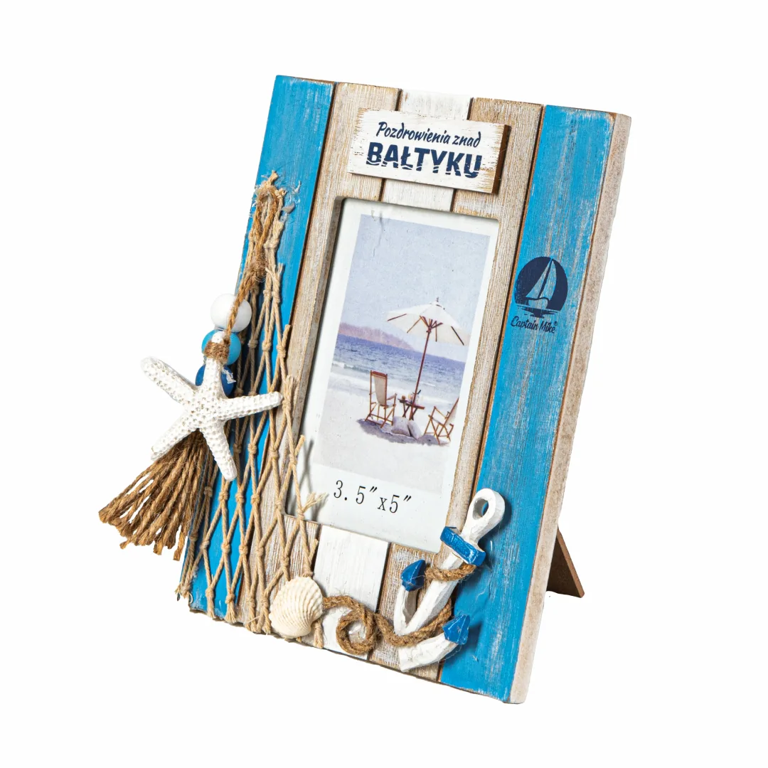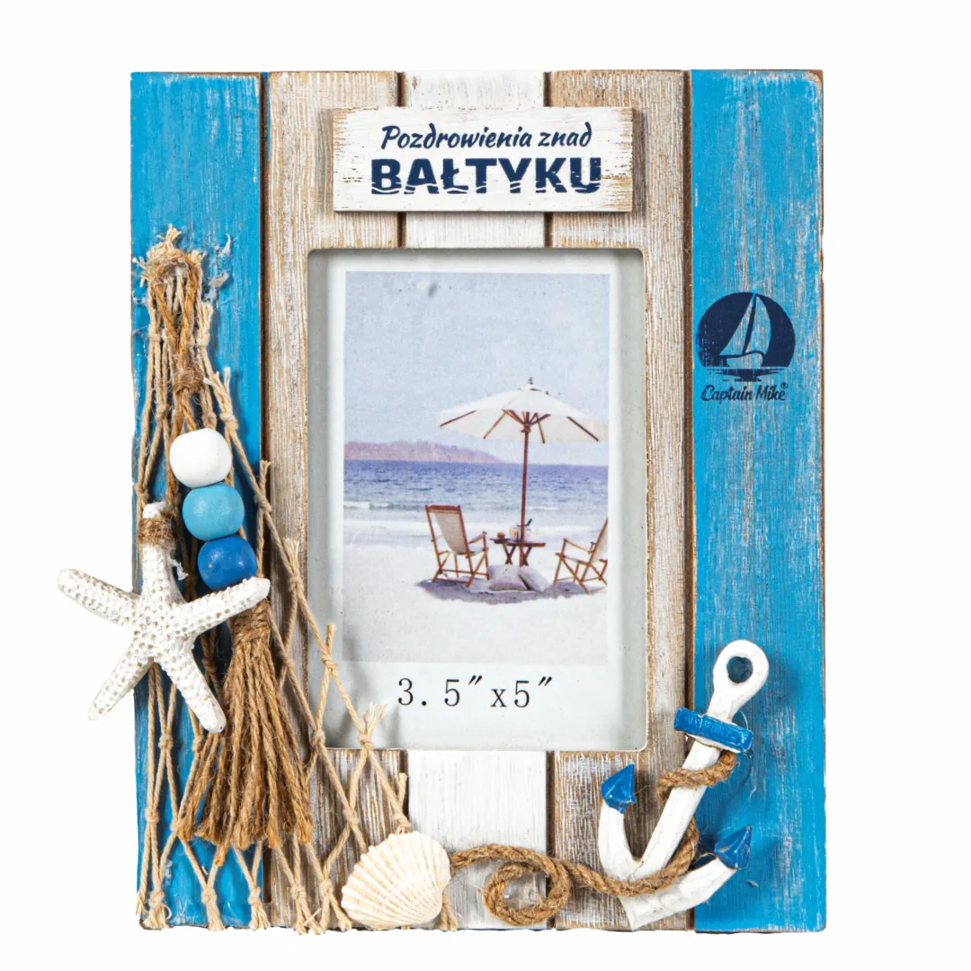 Wprowadź do swojego wnętrza klimat nadmorskich wakacji dzięki ozdobnej ramce na zdjęcie o wymiarach 8 x 11,5 cm od marki Captain Mike. To nie tylko praktyczny sposób na wyeksponowanie ulubionej fotografii, ale również dekoracja pełna morskiego uroku. Ramka została starannie wykonana z trwałych materiałów i ozdobiona marynistycznymi detalami – miniaturowymi muszelkami, rybkami, siecią rybacką oraz napisem „Pozdrowienia znad Bałtyku”.