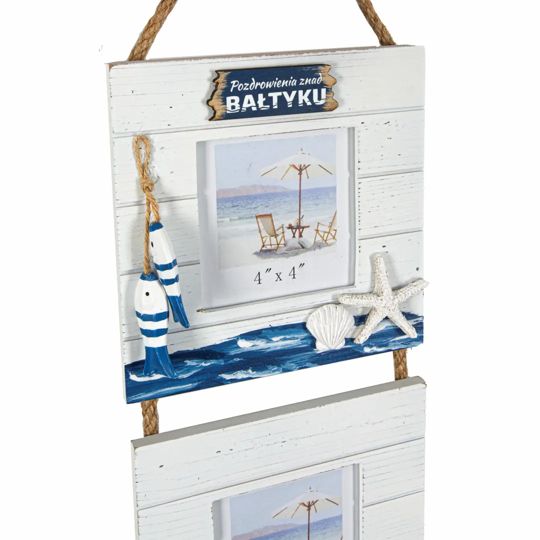 Ta urocza, wisząca ramka to nie tylko miejsce na zdjęcia – to stylowy dodatek, który wnosi do wnętrza ciepło, lekkość i nadmorski klimat. Świetnie komponuje się z wnętrzami w stylu boho, skandynawskim czy rustykalnym. Zawieś ją w salonie, przedpokoju, sypialni lub w domku letniskowym – wszędzie tam, gdzie chcesz przywołać wspomnienia znad morza i dodać przytulności przestrzeni.