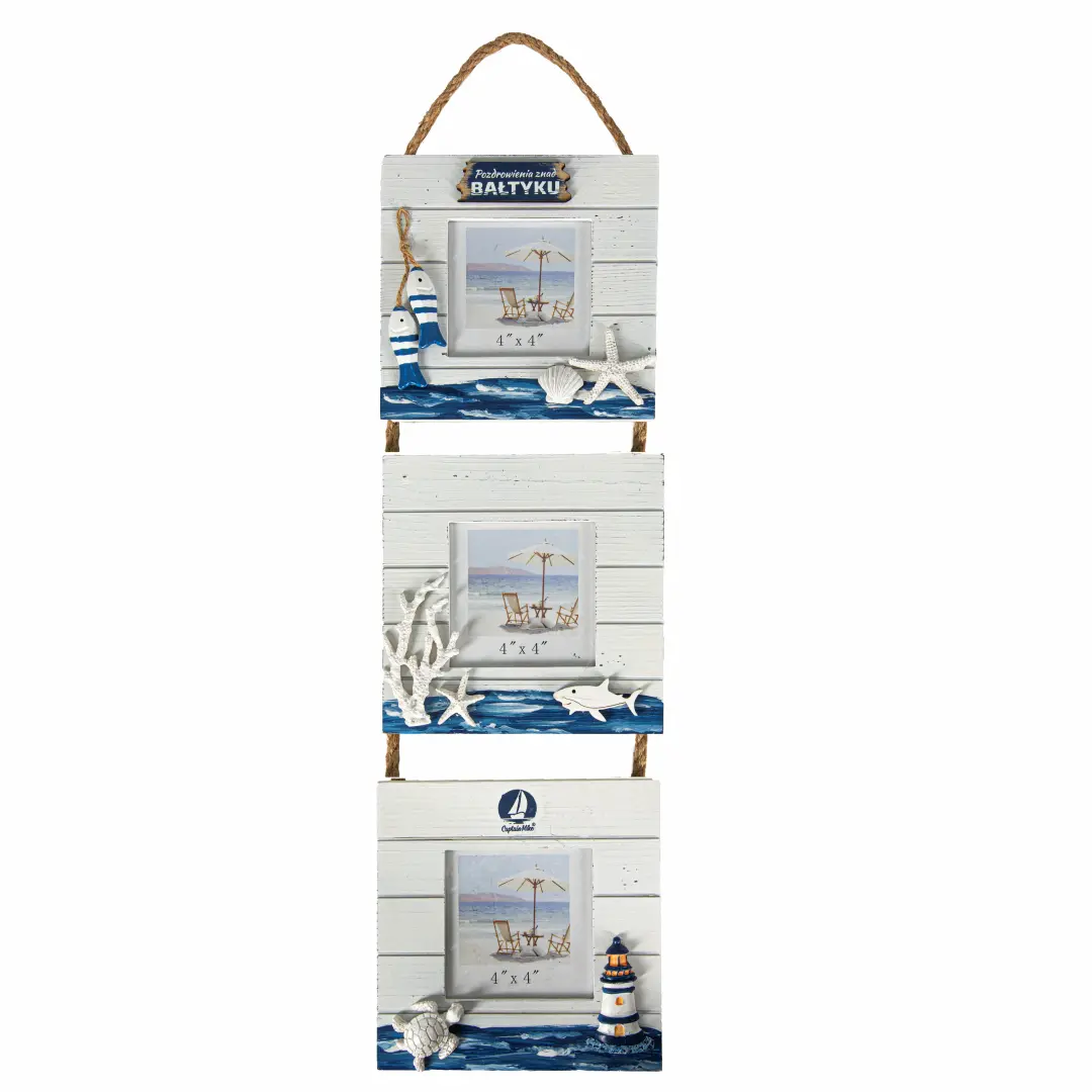 Ramka do zdjęć ozdobna wisząca 3 szt Pozdrowienia znad Bałtyku 17x3x66.5 cm