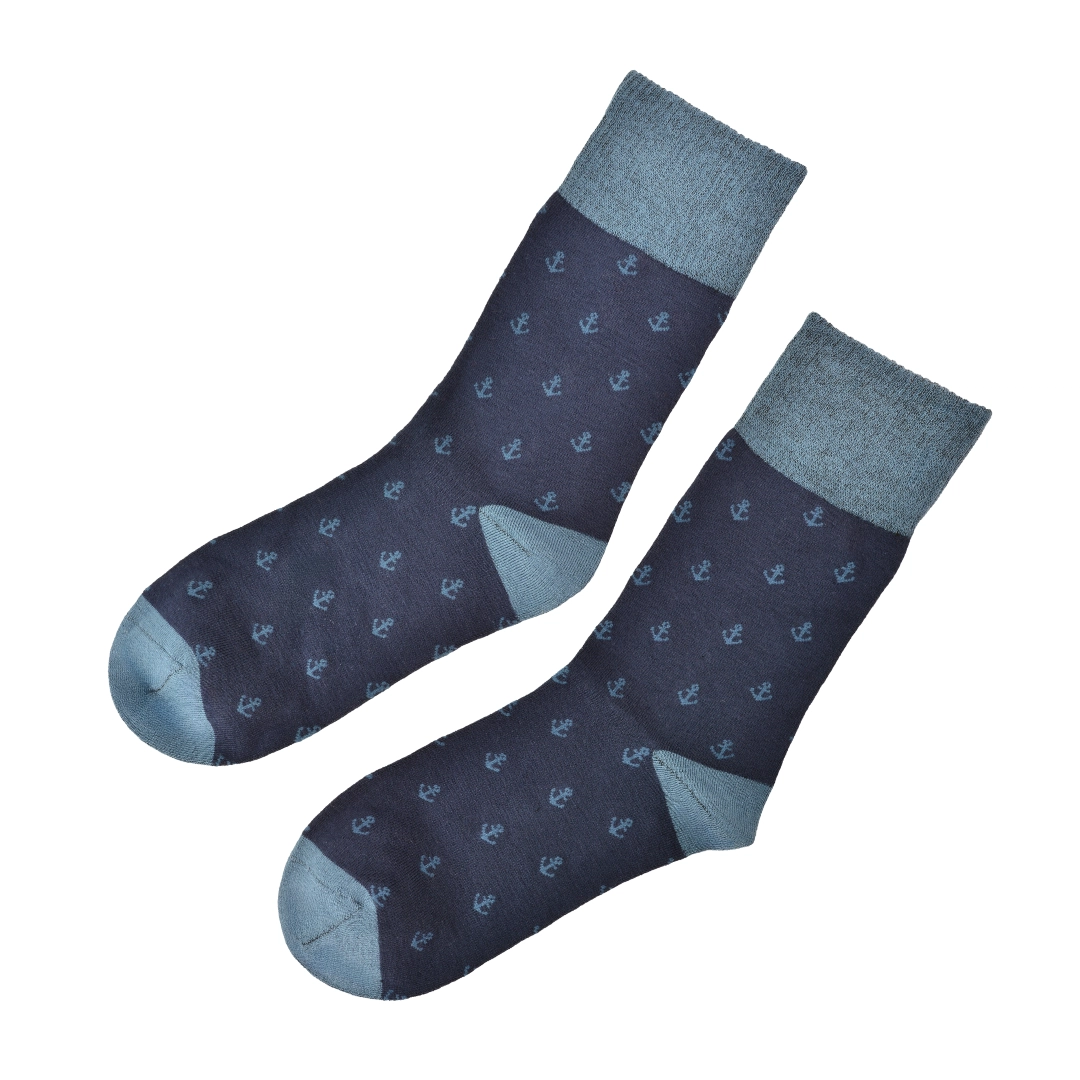 Skarpetki klasyczne długie męskie bambusowe granatowe w kotwice
