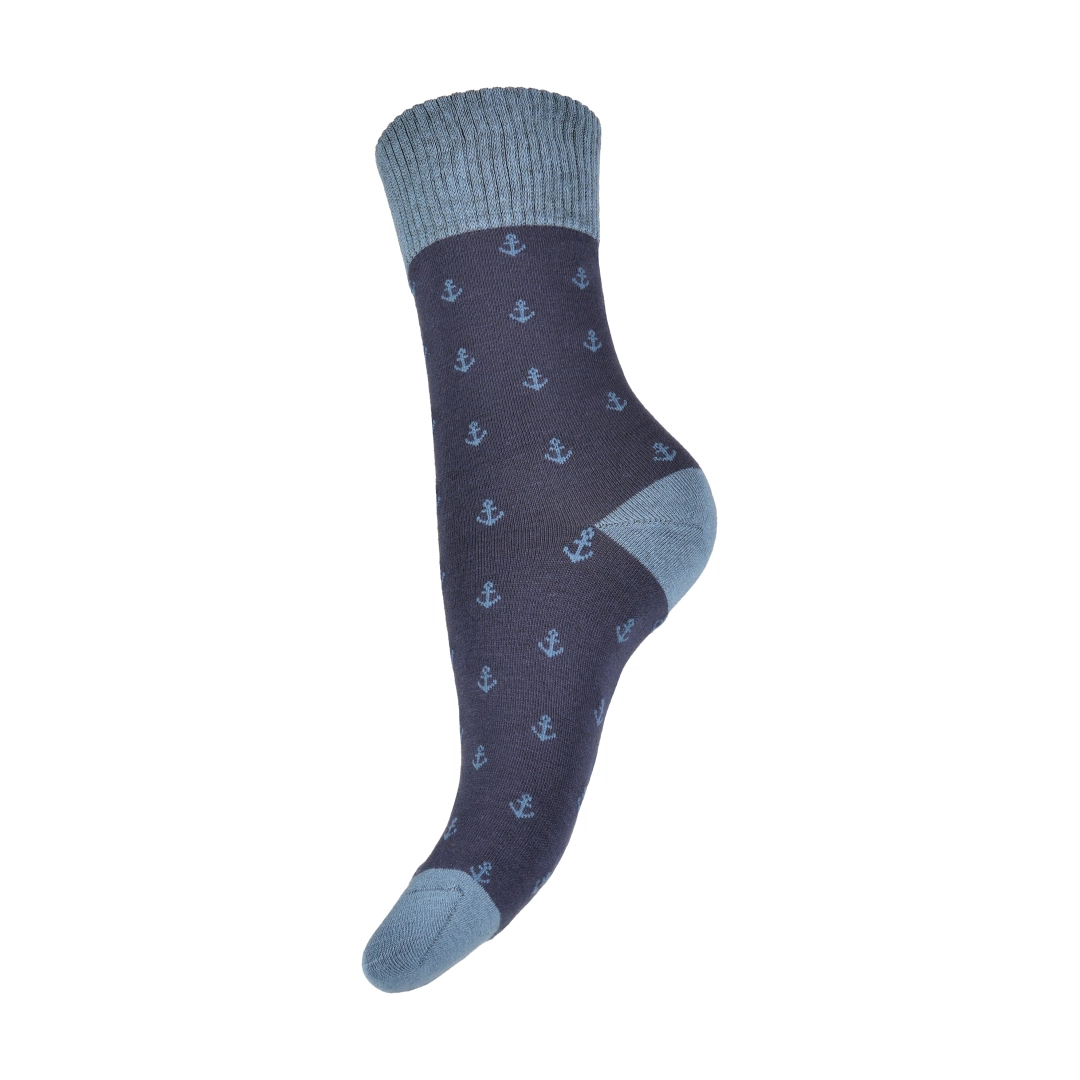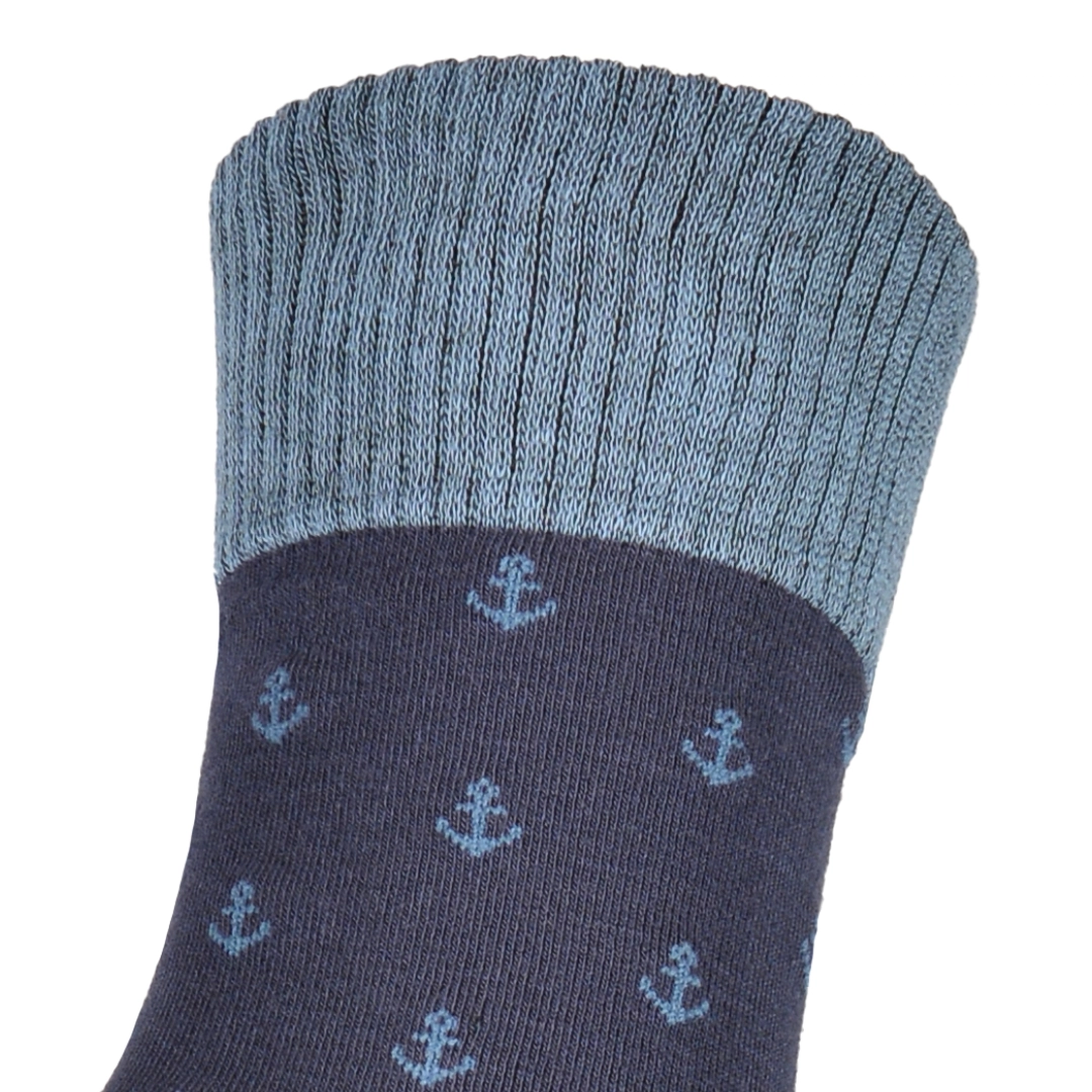 Skarpetki klasyczne długie męskie bambusowe granatowe w kotwice Captain Mike