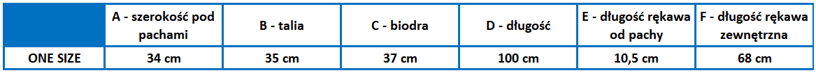 - Rozmiar: ONE SIZE (poniżej tabela z wymiarami)