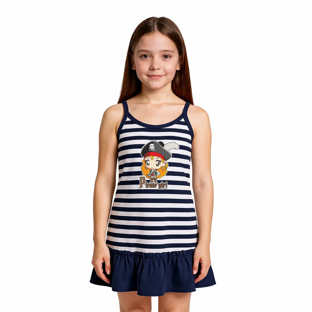 Sukienka dziecięca w stylu marynistycznym w paski PIRATE GIRL Captain Mike.