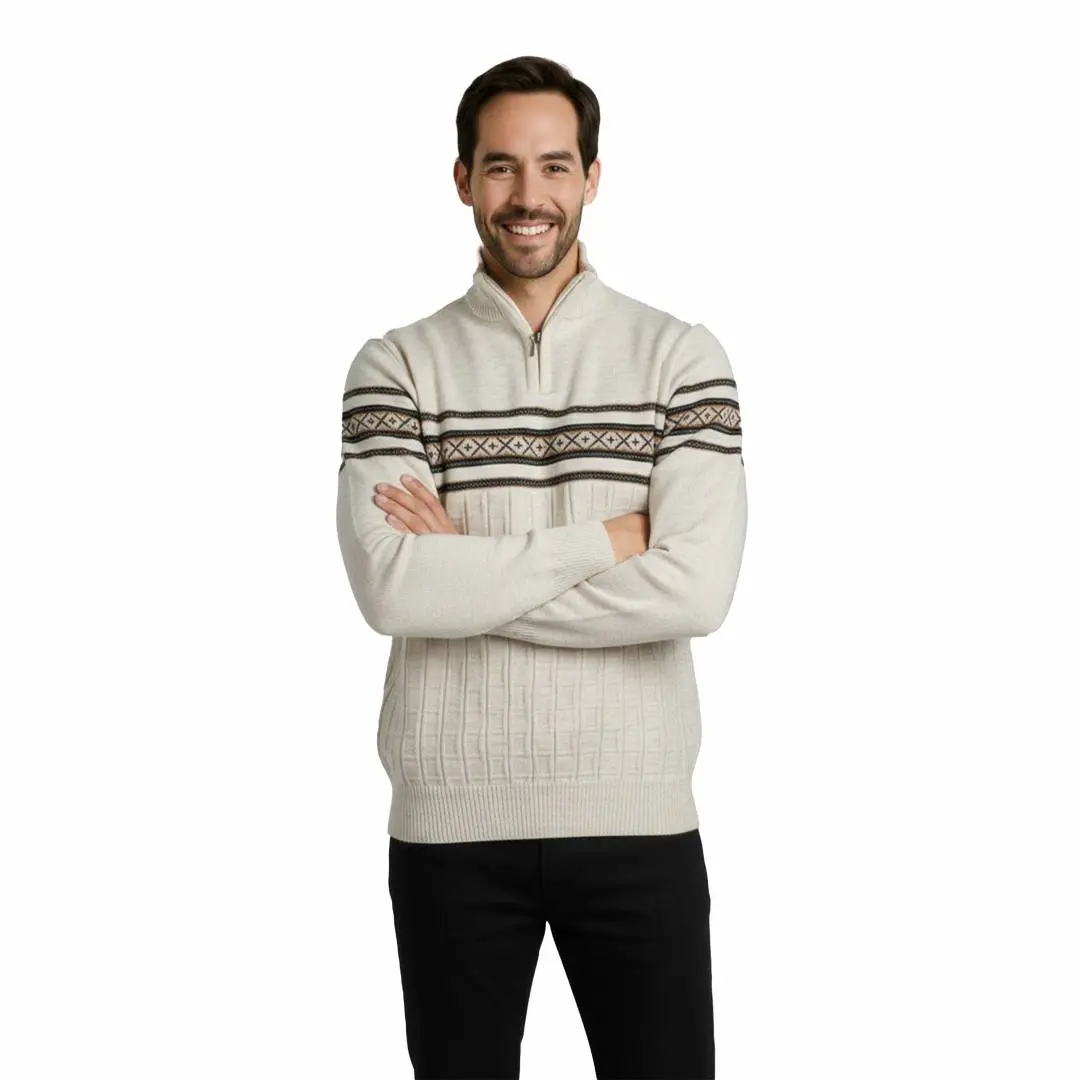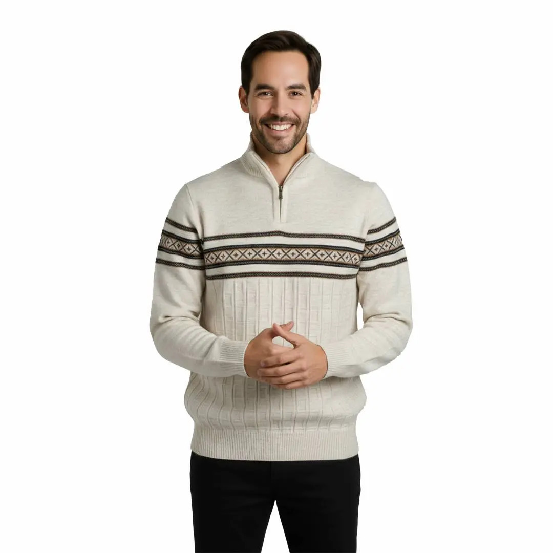 Sweter męski z zamkiem półgolf akryl wzór norweski skandynawski Captain Mike