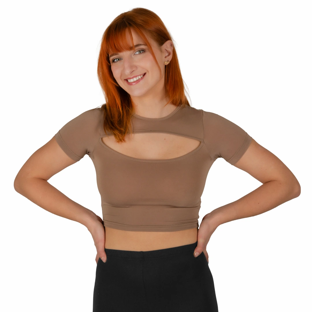 - Zmysłowy design – Wycięcie na piersi dodaje topowi niepowtarzalnego charakteru, podkreślając dekolt w subtelny, ale wyrazisty sposób. To modny detal, który sprawia, że stylizacja nabiera wyjątkowego wyrazu.