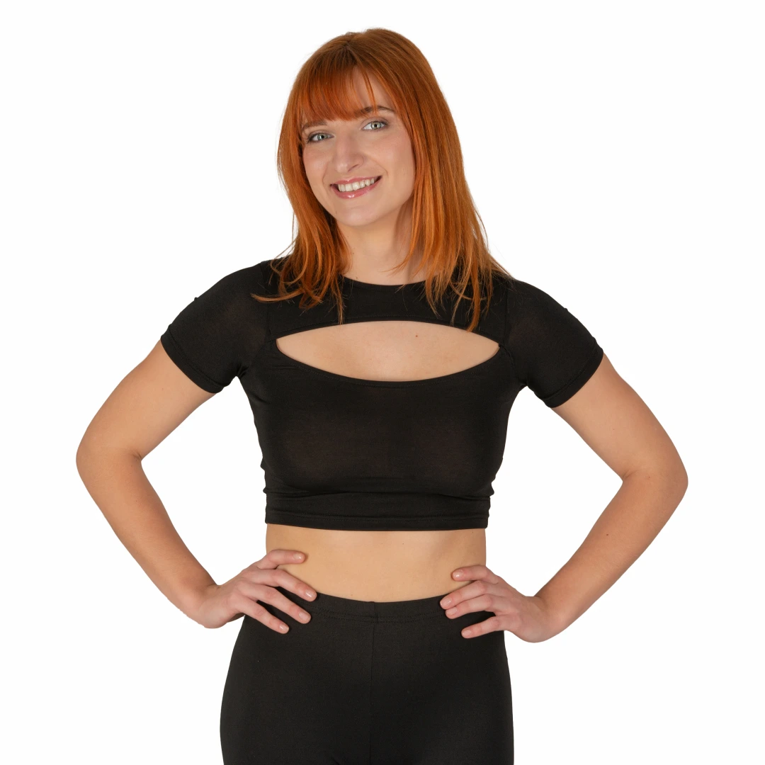 - Zmysłowy design – Wycięcie na piersi dodaje topowi niepowtarzalnego charakteru, podkreślając dekolt w subtelny, ale wyrazisty sposób. To modny detal, który sprawia, że stylizacja nabiera wyjątkowego wyrazu.