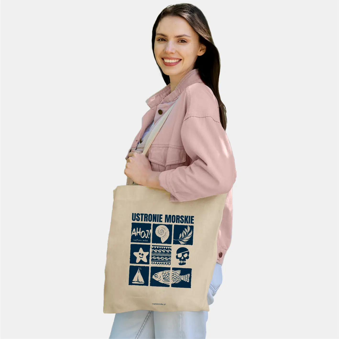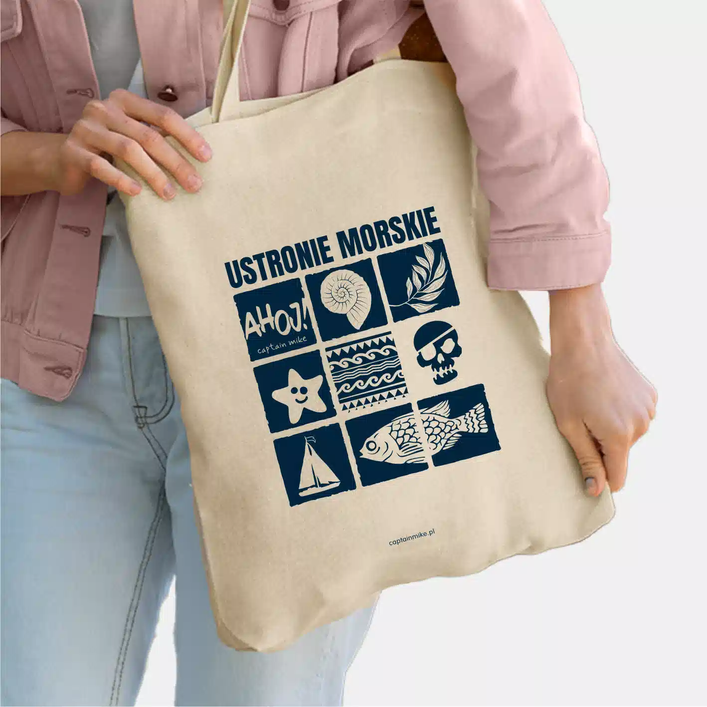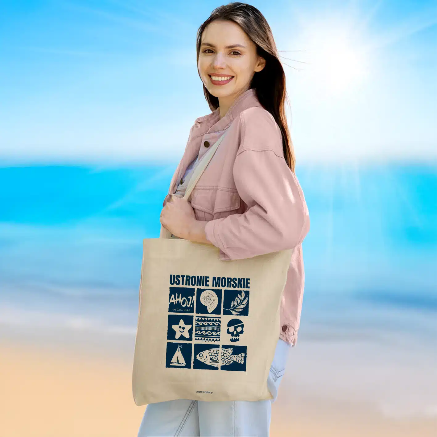 Torba bawełniana XL wielokrotnego użytku z nadrukiem Ustronie Morskie