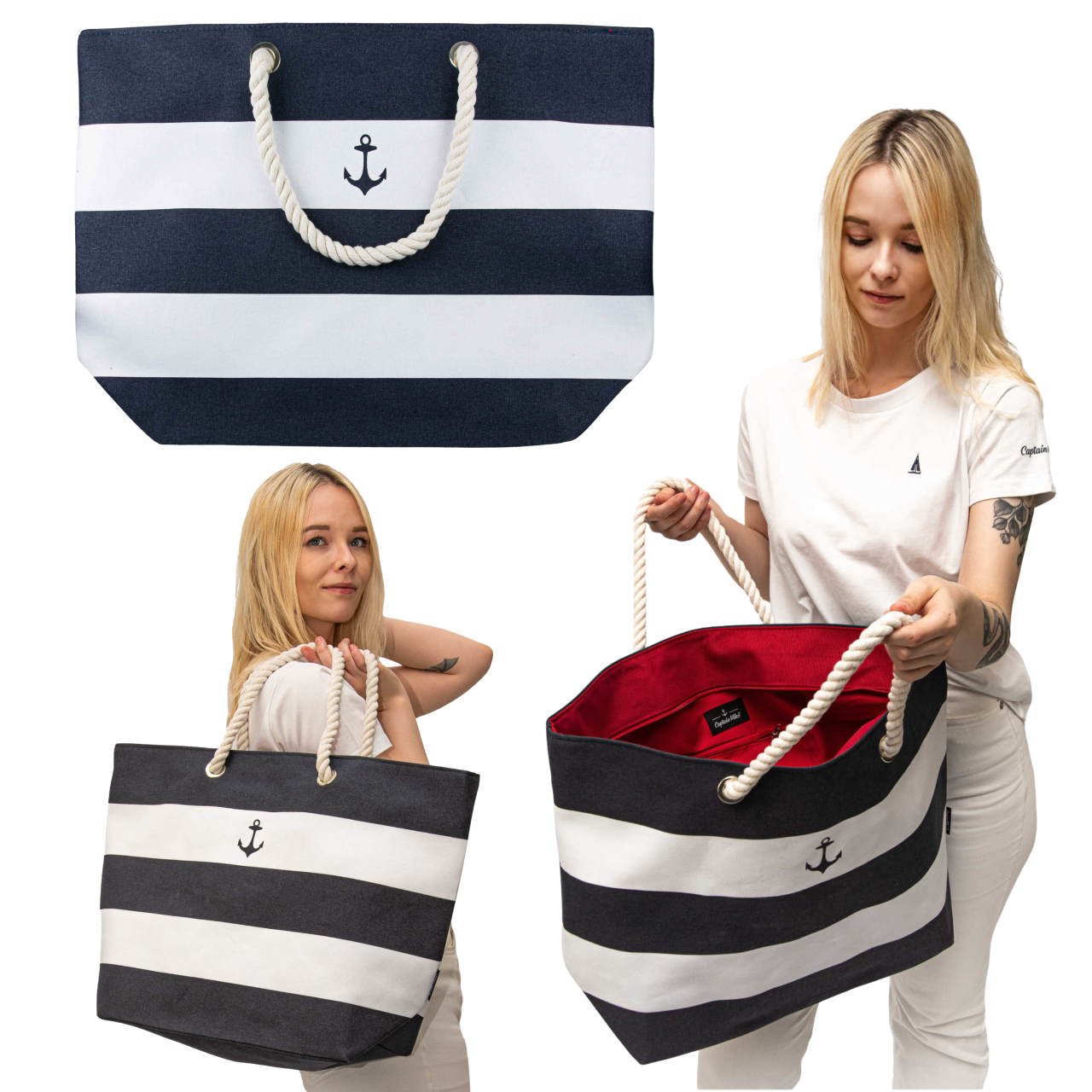 Stylowa torba plażowa marynarska w paski Captain Mike.