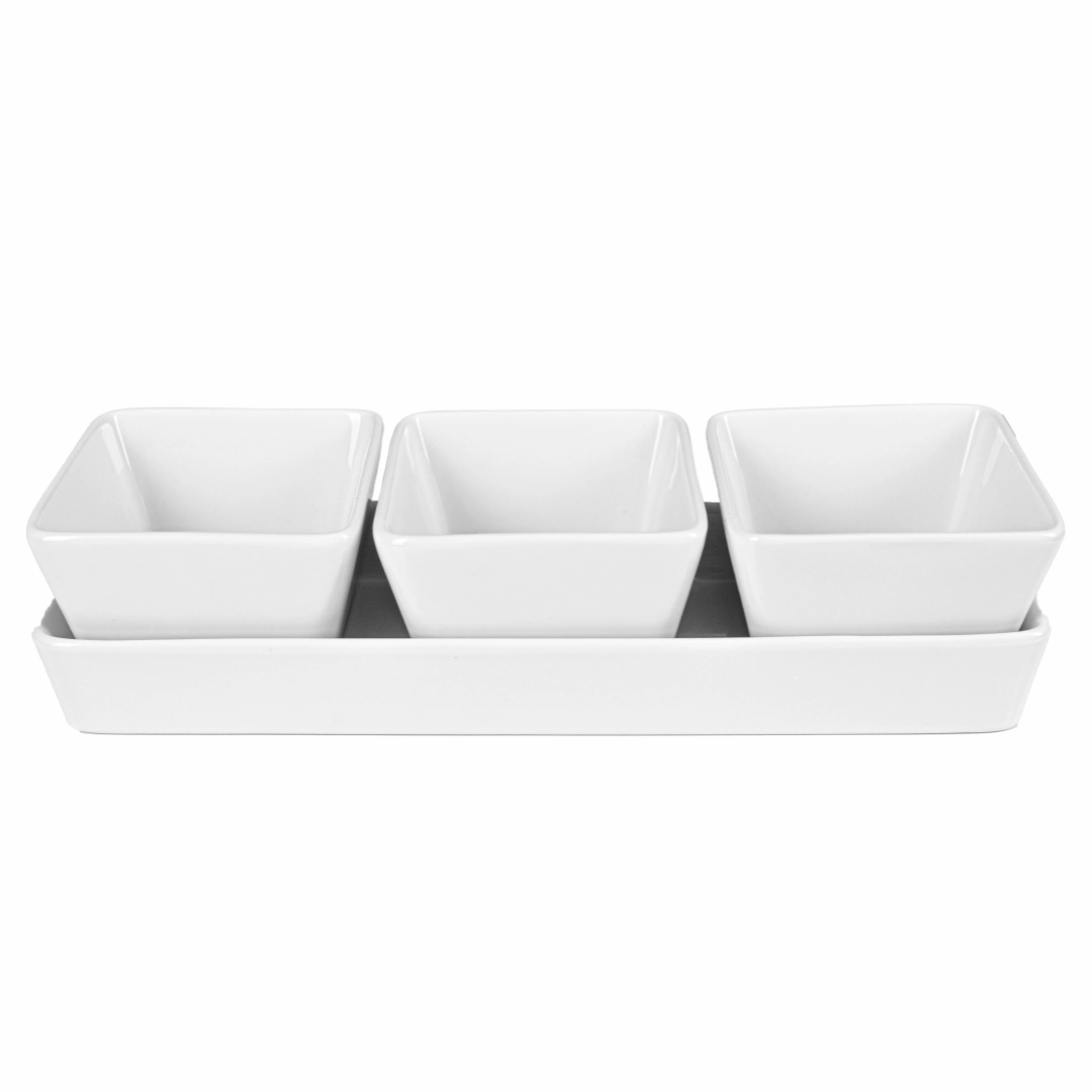 Zestaw 3 miseczek porcelanowych z tacą - elegancki sposób na serwowanie przekąsek!