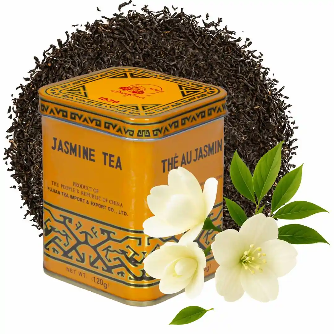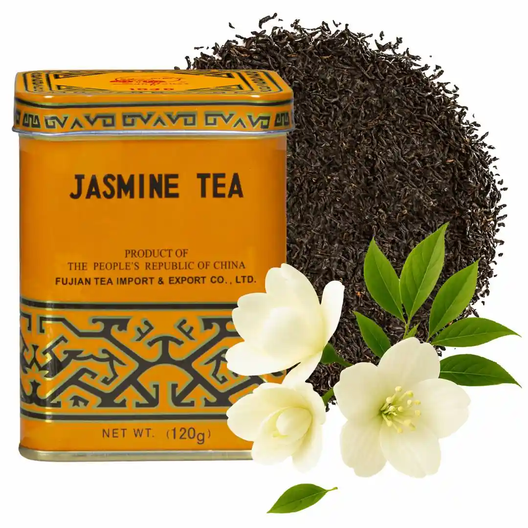 - Herbata jaśminowa (120 g) – wysokiej jakości herbata liściasta, znana ze swojego delikatnego aromatu kwiatów jaśminu. Jej lekko słodkawy smak koi zmysły i idealnie pasuje do codziennych chwil odpoczynku.